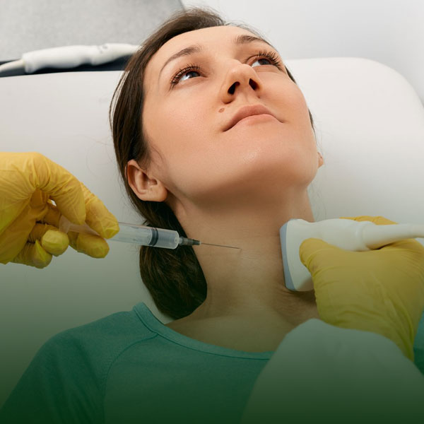 A thyroid biopsy is a diagnostic procedure used to evaluate abnormal growths or nodules in the thyroid gland. It typically involves a fine needle aspiration (FNA), where a thin, hollow needle is inserted into the thyroid nodule to collect a small sample of tissue or cells. This sample is then examined under a microscope to check for signs of cancer, inflammation, or other thyroid disorders. The procedure is usually performed under ultrasound guidance to ensure accuracy and is minimally invasive, causing little discomfort. Thyroid biopsy is a crucial step in determining whether a nodule is benign or malignant and helps guide appropriate treatment decisions. It is a safe and effective method for diagnosing thyroid conditions without the need for surgery.